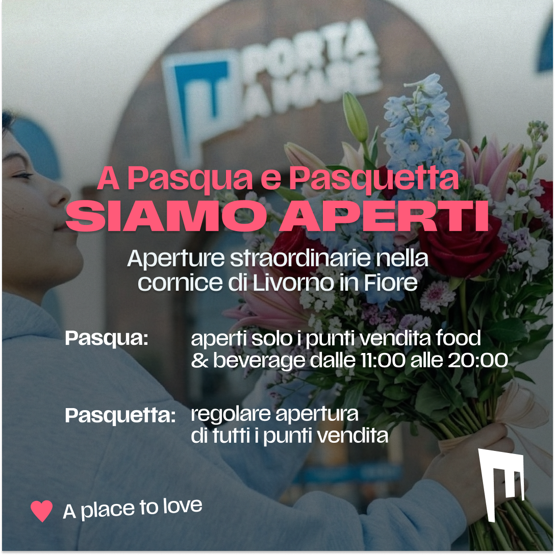 Quest’anno Porta a Mare ti accoglie anche a Pasqua🌷☀️ Per la domenica di Pasqua, ti aspetta un’atmosfera unica con Livorno in Fiore: per l’occasione, i nostri punti food & beverage saranno aperti dalle 11:00 alle 20:00, pronti a farti vivere un’esperienza di gusto in un contesto davvero speciale ✨ E non finisce qui: ti aspettiamo […]